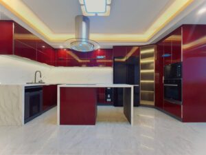 Thi công dự án tủ bếp nhôm cánh kính đỏ rượu vang cao cấp tại...