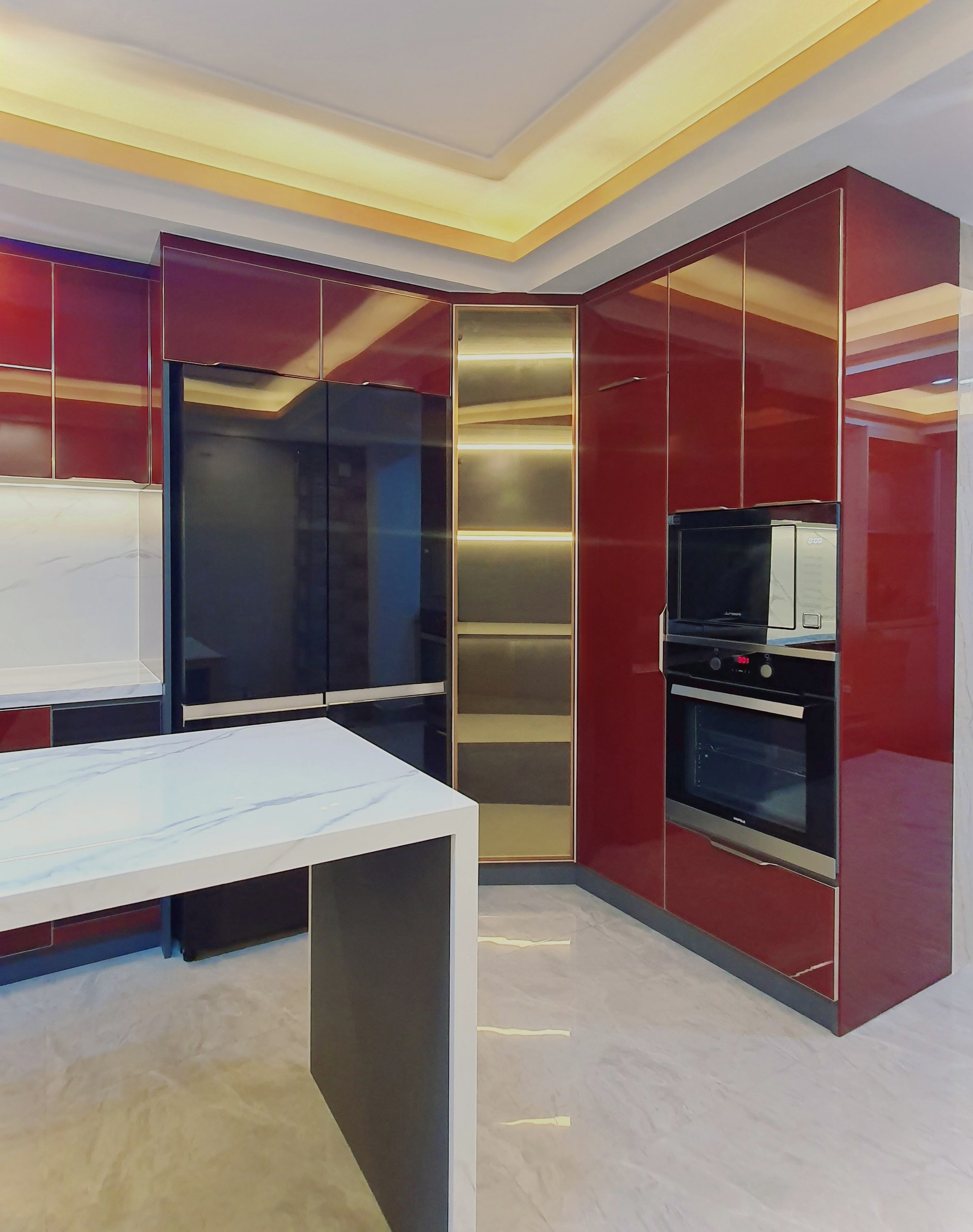 Hòa Mập Nội Thất tự hào giới thiệu dự án thi công tủ bếp nhôm cánh kính cao cấp tại Tân Bình. Với sự kết hợp hoàn hảo giữa màu đỏ rượu vang sang trọng và công nghệ tủ bếp nhôm nguyên tấm, chúng tôi đã mang đến một không gian bếp hiện đại, tiện nghi và đẳng cấp, thể hiện trọn vẹn cá tính của gia chủ.